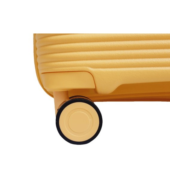Комплект легких пластикових 4-колісних валіз жовтого кольору великого, середнього та малого розміру Airtex Jupiter.