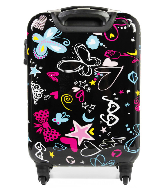 Чемодан Snowball 55203 55 см виконаний в яскравому, модному і оригінальному стилі з маленькими метеликами, сердечками та іншими візерунками, надрукованими на його формованому корпусі з полікарбонату. Комфортний, практичний і міцний, цей чемоданчик має безліч переваг! Він ідеально підходить для подорожей на вихідних або в салоні літака (включаючи всі компанії!). При хорошому співвідношенні ціна / якість!