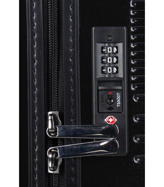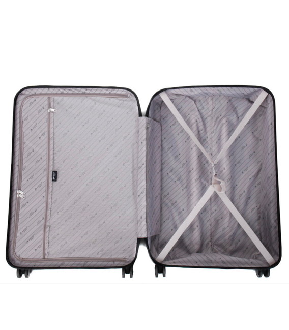 Валізи виготовлені з міцного та легкого матеріалу – полікарбонату. Полікарбонат має високу гнучкість, легкість і стійкість до механічних пошкоджень. Наявність кодового замку TSA забезпечить недоторканність багажу від сторонніх осіб. Чотири незалежні обертові поліуретанові колеса з підшипниками дозволяють обертатися валізі на 360°. Висувна ручка дозволяє налаштувати висоту на власний смак. Зверху та збоку валізи розташовані ручки для перенесення його у вертикальному або горизонтальному положеннях. Всередині валізи є 2 відділення, одне закривається на блискавку, друге має ремені для фіксації багажу.