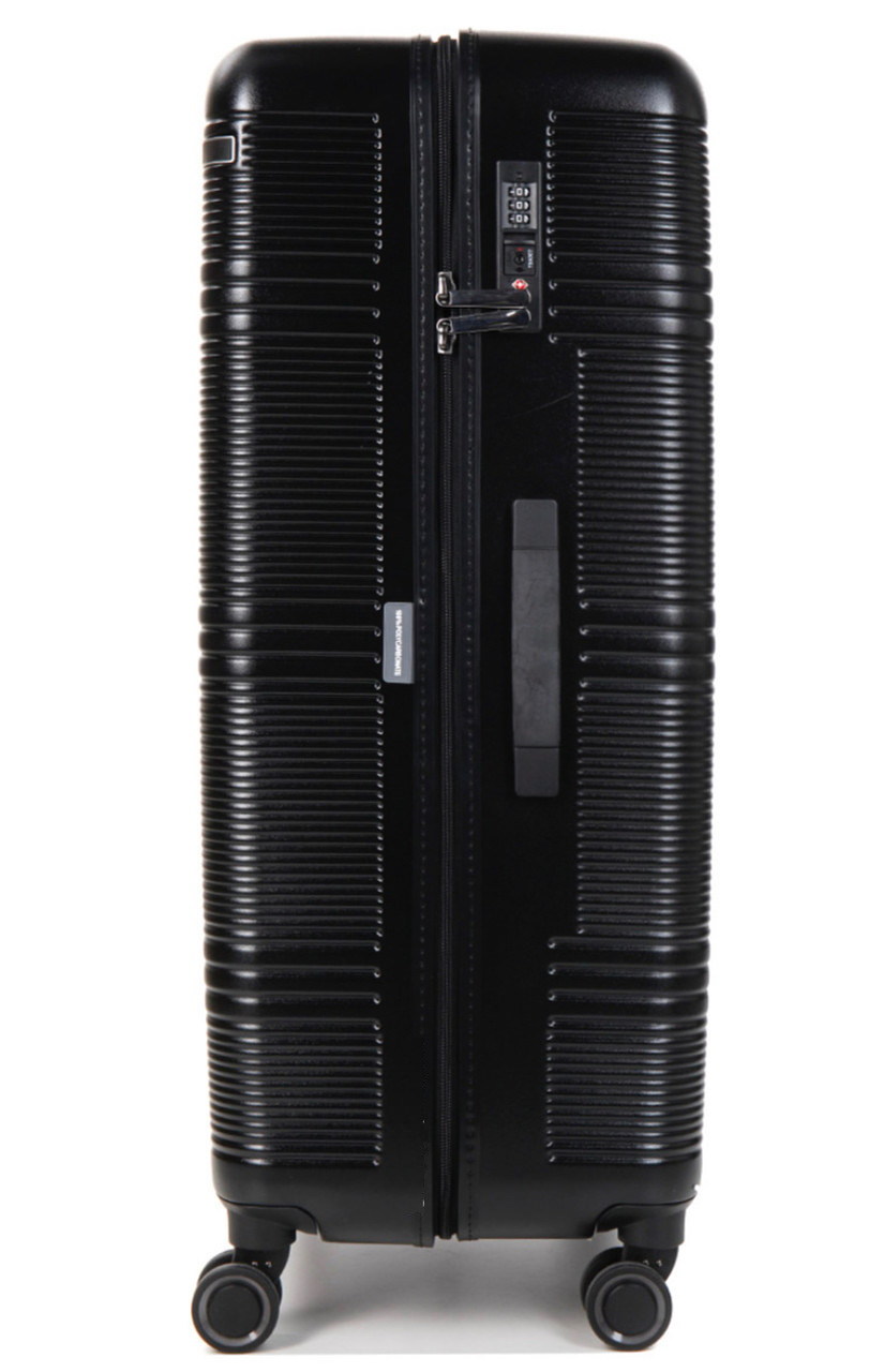Валізи виготовлені з міцного та легкого матеріалу – полікарбонату. Полікарбонат має високу гнучкість, легкість і стійкість до механічних пошкоджень. Наявність кодового замку TSA забезпечить недоторканність багажу від сторонніх осіб. Чотири незалежні обертові поліуретанові колеса з підшипниками дозволяють обертатися валізі на 360°. Висувна ручка дозволяє налаштувати висоту на власний смак. Зверху та збоку валізи розташовані ручки для перенесення його у вертикальному або горизонтальному положеннях. Всередині валізи є 2 відділення, одне закривається на блискавку, друге має ремені для фіксації багажу.