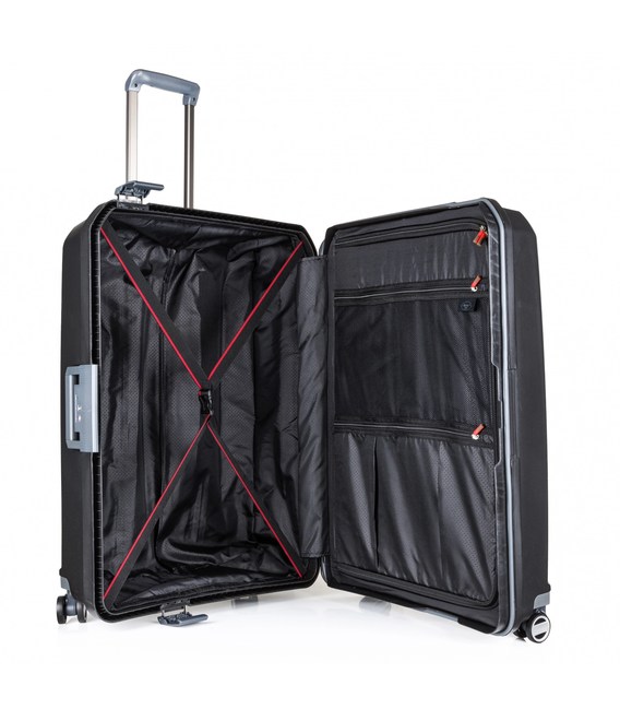 Дизайн колекції надає валізам унікальність і неповторний зовнішній вигляд, який робить їх легко впізнаваними на багажній стрічці. Легкий, міцний з контрастними матовими і блискучими поверхнями.