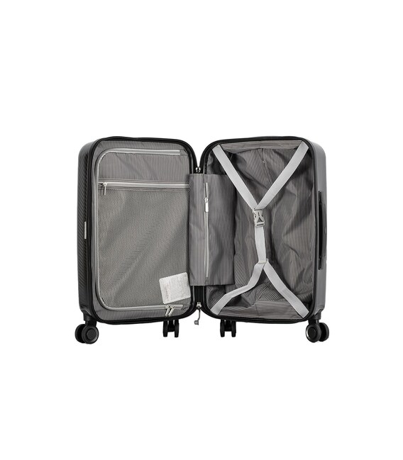 Валіза має ефективне відділення, тому в ньому достатньо місця для вашого багажу. Передня частина відкривається та вміщує планшет, зовнішній акумулятор та ноутбук діагоналлю 14–15 дюймів. Швидкий доступ до цих аксесуарів через передню кишеню без відкриття основного відділення - це перевага, яку ви отримаєте при покупці цієї валізи. У комплект ручної поклажі також входить USB-порт і кабель USB для зовнішнього акумулятора. Ви можете заряджати мобільні пристрої, перебуваючи в нерухомому стані (переносний акумулятор не входить у комплект).
