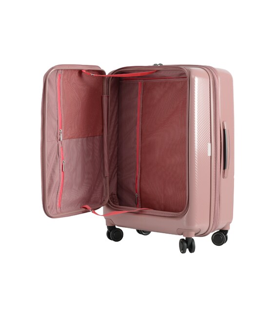 Валіза має ефективне відділення, тому в ньому достатньо місця для вашого багажу. Має два типи відкривання: фронтальне та основне. Відкриття передньої частини не тільки допомагає заощадити місце, а й час, забезпечуючи швидший доступ до багажу, не відкриваючи головне відділення.