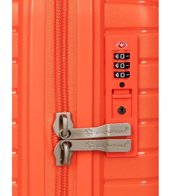 Валіза Snowball Oruro пересувається кінчиками ваших пальців за допомогою двотрубного візка з регульованим положенням і 4 подвійними колесами, що обертаються на 360°. Зверху м'яка ручка полегшує утримання при розміщенні на багажній полиці. Збоку врізний кодовий замок TSA забезпечує швидке та просте замикання.
