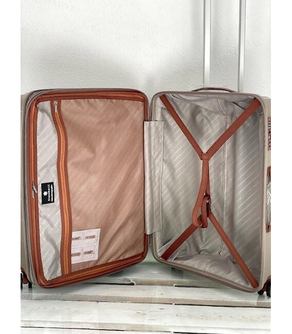 Всередині валіза має два відділення: одне з ременем для фіксації речей, інше закриваєтсья на блискавку та має карманчик
