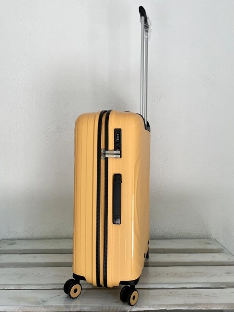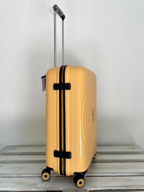 Зроблена з еластичного пластику, який при ударах згинається, тому його важко зламати! Має приховану подвійну зовнішню блискавку, якісні замочки та ручки! Колеса в цієї моделі дуже м‘яко їздять, мають металевий стержень, щоб витримувати велику вагу.