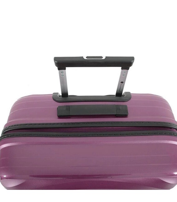 Зроблена з еластичного пластику, який при ударах згинається, тому його важко зламати! Має приховану подвійну зовнішню блискавку, якісні замочки та ручки! Колеса в цієї моделі дуже м‘яко їздять, мають металевий стержень, щоб витримувати велику вагу.