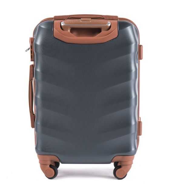 Валіза на коліщатках Wings виповнена з надійного ударостійкого сплаву пластику ABS, що дозволяє їй бути міцною і легкою, а також вікористовувати для будь-яких подорожей. Валіза має жорстку форму. Виріб закривається на молнію. Чемодан оснащений телескопічною ручкою на металевій основі і підйомною пластиковою ручкою на бічній поверхні, а також ручкою, яка розташована зверху валізи. Чотири колеса повертаються на 360 градусів. Є кодовий замок для збереження речей. Усередині виробу є притискні ремені для багажу. На іншій бічній поверхні розташовані невеликі пластикові ніжки. Валіза має водовідштовхувальні властивості і стійкість до вигоряння.