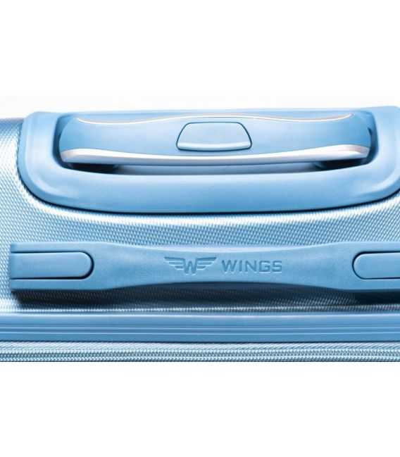 Розкішний чемодан від відомої компанії WINGS створений для найвимогливіших клієнтів. Сучасна, легка модель, виконана з міцного пластику ABS Plus міцного і стійкого до подряпин, з дворівневою телескопічною ручкою. Зовнішні, приємні на дотик гумові ручки і комбінований замок, який запобігає проникненню. Міцна, дюралюмінієва рама, встановлена в валізі. Обладнаний чотирма поворотними гумовими колесами, які забезпечують стабільність і легкість в будь-якому напрямку. Інтер'єр в яскравому кольорі, розділений блискавкою, на дві функціональні камери.