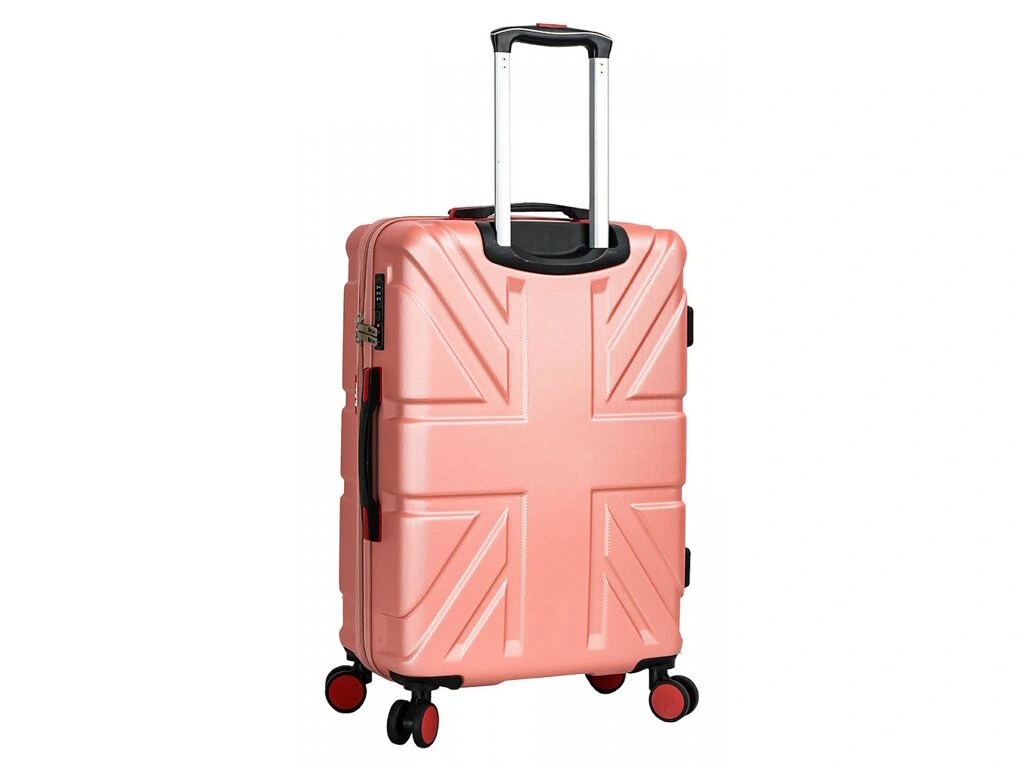Дорожня валіза має 4 поворотних колеса, верхню ручку і алюмінієву висувну ручку з регульованою висотою. Валіза застібається на блискавку з трьох сторін. Збоку валізи є кодовий замок TSA. На кришці багажника є велика сітчаста кишеня на блискавці та ще одна велика кишеня на блискавці під ним. Усередині чохла є два ремені безпеки, які тримають ваш одяг складеним під час транспортування.