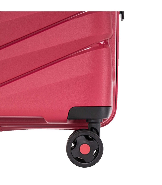 Чотири поворотні колеса забезпечують легкість у пересуванні, дозволяючи маневрувати валізою в будь-якому напрямку без зайвих зусиль. Телескопічна ручка регулюється під зручний зріст користувача, а додаткові ручки на верхній та бічній частинах дозволяють легко піднімати та переносити валізу.