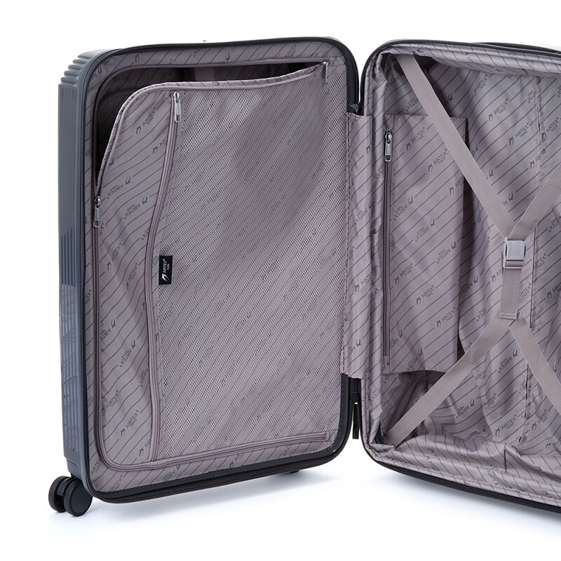 Середня дорожня валіза на чотирьох колесах поєднує високу міцність, продуману функціональність і сучасний дизайн. Ідеально підходить для подорожі однієї людини, пропонує майже 80 літрів об’єму та можливість розширення.