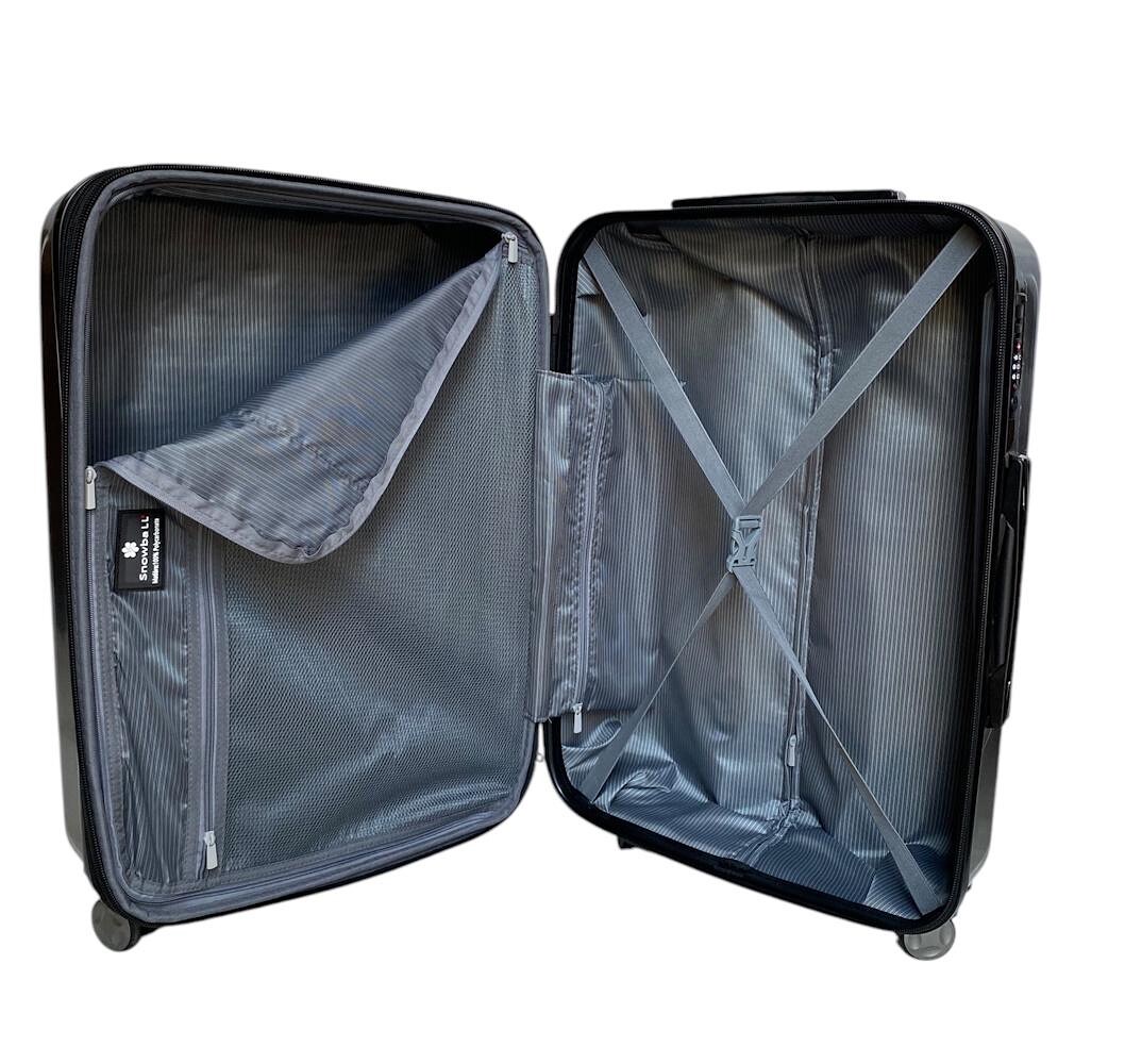 Внутрішній простір валізи Snowball 91603 продуманий до дрібниць: місткі відділення, фіксувальні ремені та додаткові кишені допомагають акуратно розмістити одяг, взуття й аксесуари, підтримуючи порядок у дорозі.