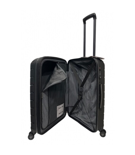 - Матеріал корпусу -100% поліпропілен, один з кращих матеріалів застосовуваних при виробництві дорожніх валіз. Представлена модель - розробка і гордість компанії. Основна частина корпусу валізи армована ниткою зі скловолокна - найвища стійкість до деформації і стирання.