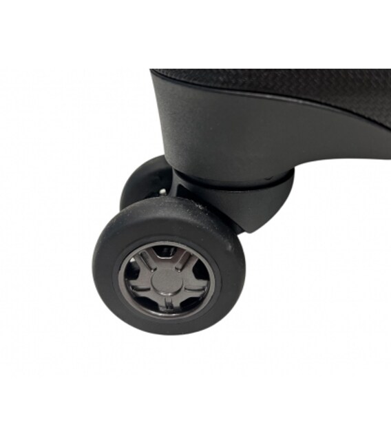 - 4 подвійних колеса з основою з ТПУ (Термополиуретан) кріпленням зі сталі та інноваційної (без шурупів) системою кріплення колісного блоку до корпусу (максимум надійності при експлуатації і здачі в багаж).