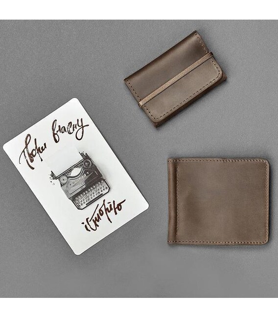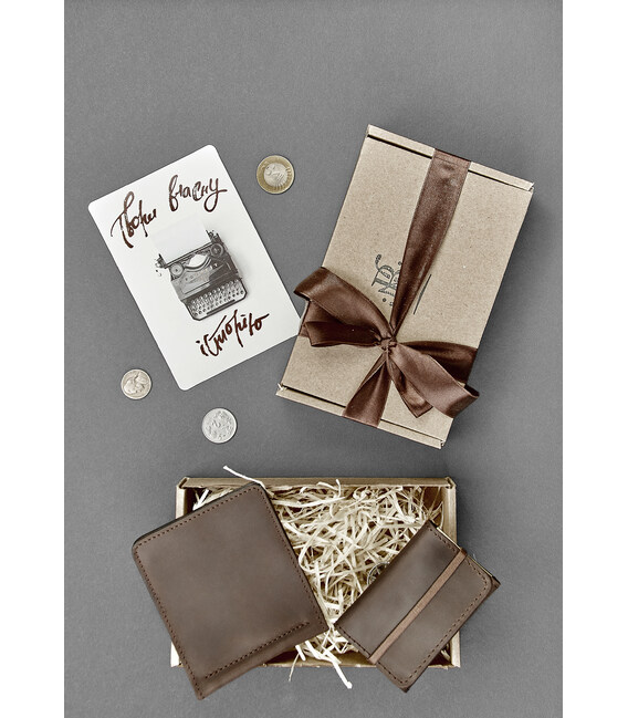 Портмоне 1.0 Горіх. З одного боку, це банальний затиск для грошей, а з іншого - він супер-зручний, тому що в ньому є безліч дуже зручних кишеньок для пластикових карток і для невеликих записок-папірців! Кард-кейс 1.1 Горіх. Неймовірно компактний і зручний кейс дозволяє зберігати одночасно до 15-20 стандартних пластикових карт. Підходить так само і для візиток. Листівка з важливими словами, які мотивують!Подарунковий набір аксесуарів також доступний в кольорі графіт і нічне небо - Набір аксесуарів "Сан-Франциско" та Набір аксесуарів "Токіо"