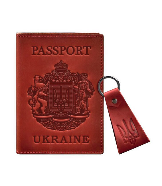 У подарунковий набір шкіряних аксесуарів з українською символікою корал (BN-set-42-UA-coral) входить:Шкіряна обкладинка для паспорта коралова з українським гербом. Стильна і функціональна обкладинка для паспорта з тисненням у вигляді герба України Брелок з гербомУВАГА! Вироблення даної шкіри передбачає природне появлення на ній подряпин і потертостей в ході використання! Від цього виріб стає більш індивідуальним і приємним, це оцінять справжні шанувальники вінтажного стилю :) А так же перший час шкіра може фарбуватися при сильному терті об інші предмети - це особливість її вичинки, поступово цей ефект зменшується, шкіра полірується і набуває трохи глянцевий ефект.