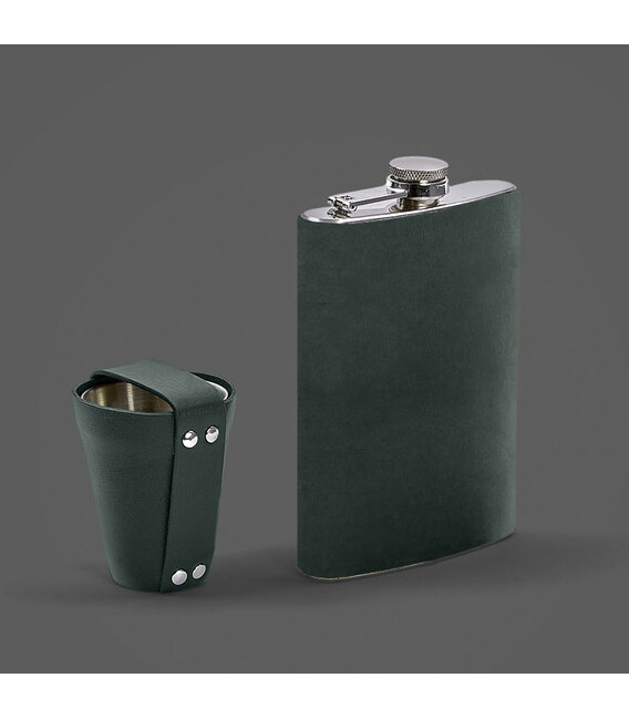 Набір з флягою та чарками в шкіряному чохлі зелений Crazy Horse