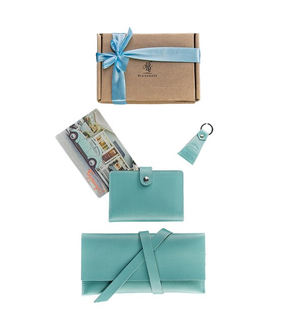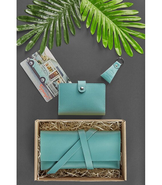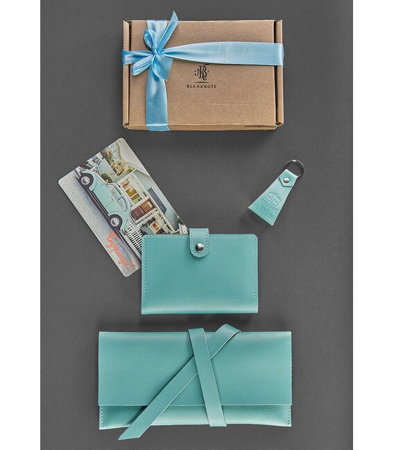 1. Тревел-кейс 1.0, Тіффані - функціональний і практичний холдер, надійний охоронець ваших квитків і документів; 2. Обкладинка для паспорта, Тіффані - вона стане ідеальним хранителем ваших документів; 3. Брелок, Тіффані - вірний супутник для ваших ключів; 4. Дизайнерська листівка - для важливих слів.