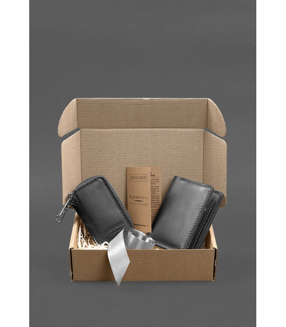 Упаковані аксесуари в крафтову коробку зі святковою стрічкою.