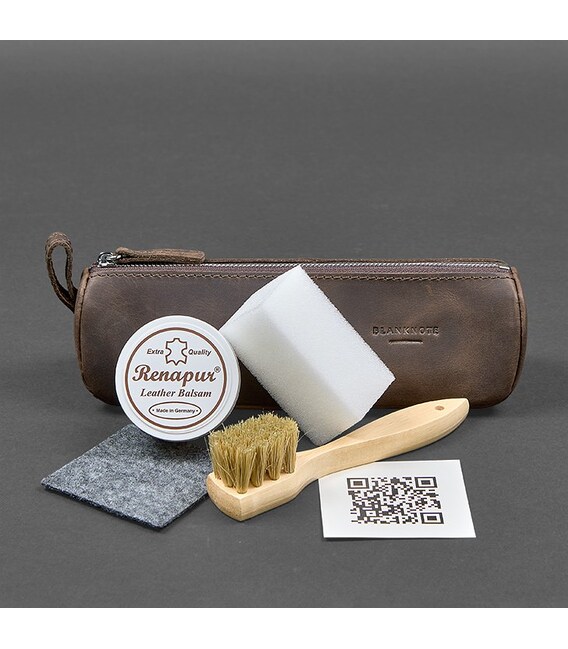 Набір для догляду за шкіряними виробами у шкіряному чохлі темно-коричневий