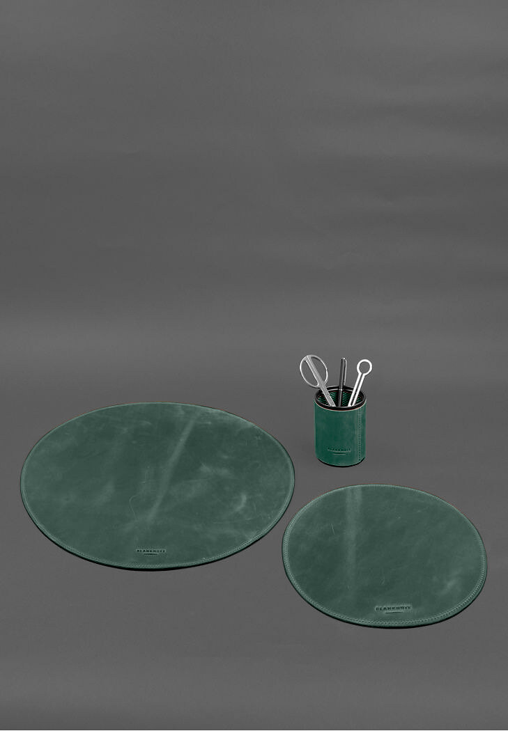 Настільний набір із натуральної шкіри 1.2 зелений Crazy Horse