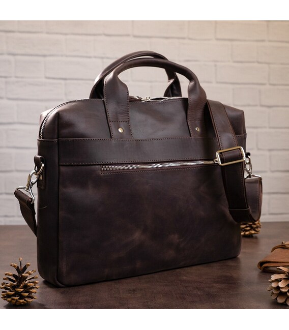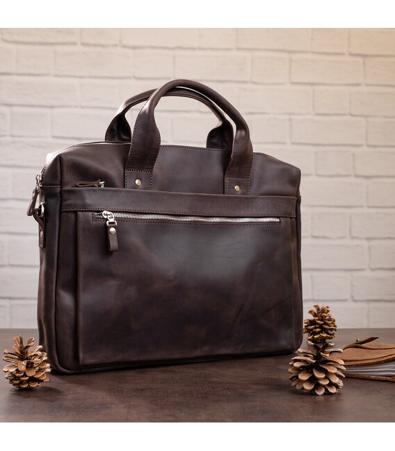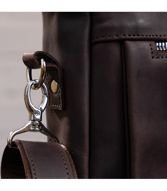 Міцна чоловіча сумка - з вінтажної шкіри високої якості, іноді її називають crazy horse або просто crazy, для неї характерні потертості, штучні подряпини і неоднорідність забарвлення. Через це вироби з такої шкіри довше тримають презентабельний зовнішній вигляд. З додаткових матеріалів, встановлена надійна металева фурнітура, а для підкладки взято міцний текстиль.