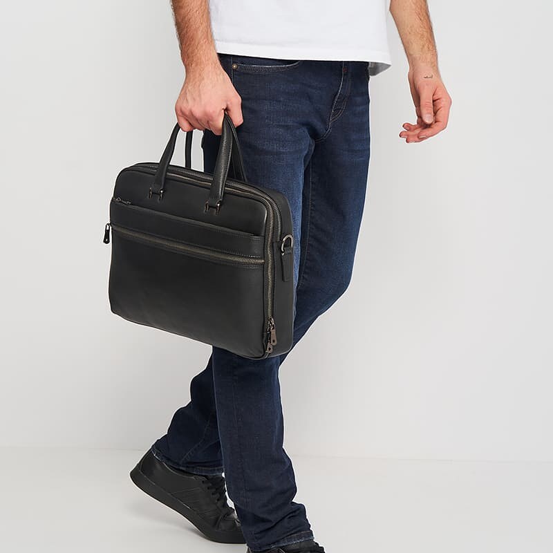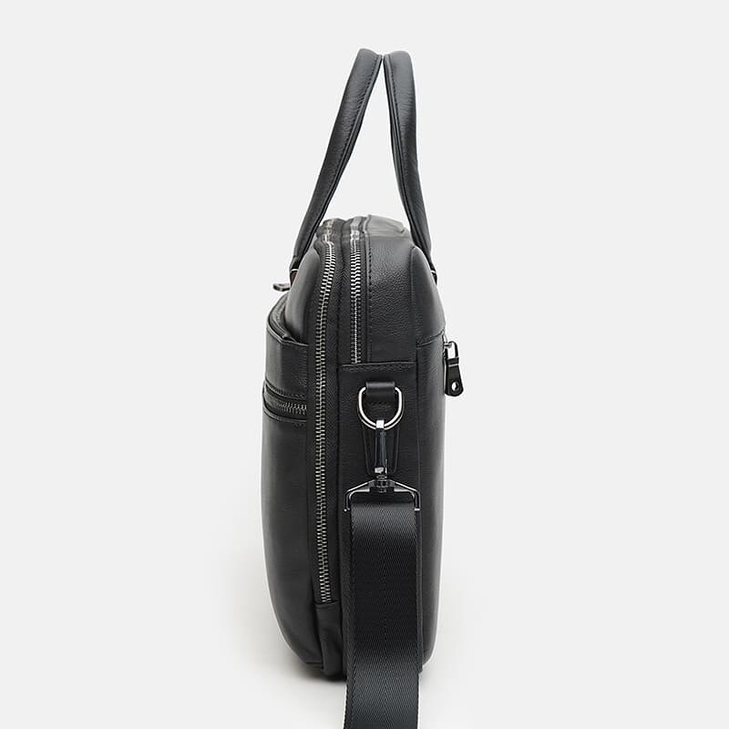 Презентабельна стильна сумка для чоловіків. Виготовлена з якісної натуральної шкіри. Має 2 відділення на блискавках. Всередині 1 кишеня та відділ під ноутбук, планшет. Зовні 3 кишені на блискавці. Підкладка з текстилю. Колір фурнітури-срібло. Фурнітура з металу. Знімний плечовий ремінь регулюється по довжині.