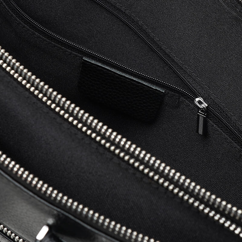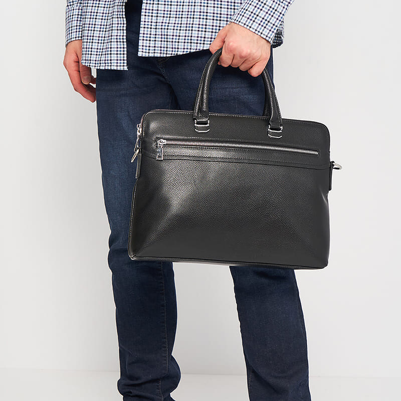 Сумка виготовлена з натуральної шкіри. Має 2 відділення на блискавках. Всередині 1 відділення під ноутбук або планшет і 3 кишені на блискавці. Зовні 2 кишені на блискавці. Підкладка з текстилю. Фурнітура-метал. Колір фурнітури - срібло. Знімний плечовий ремінь регулюється по довжині.