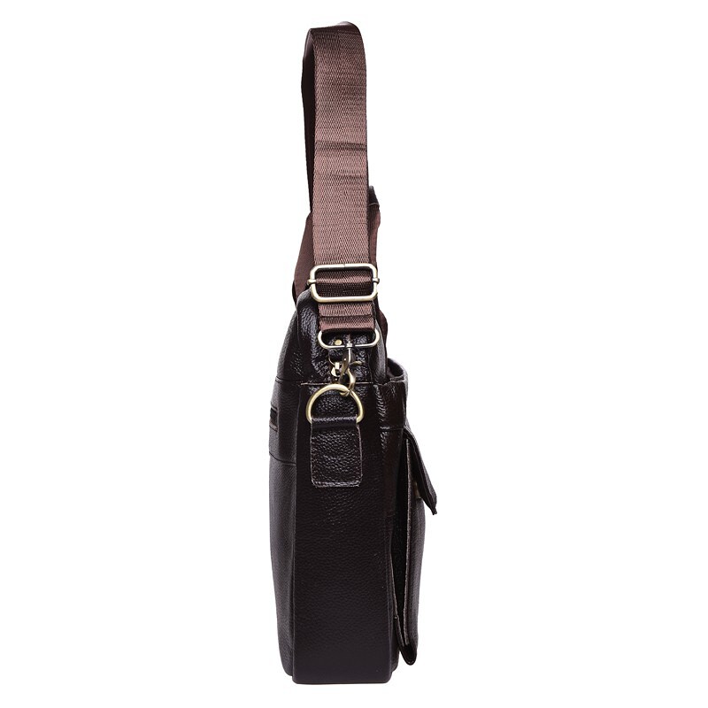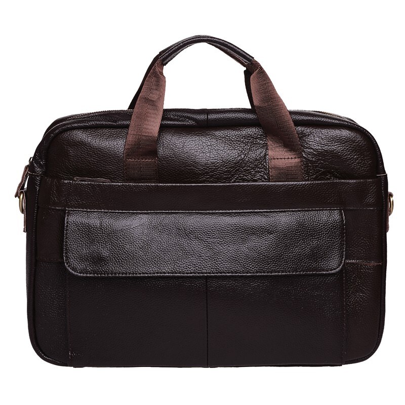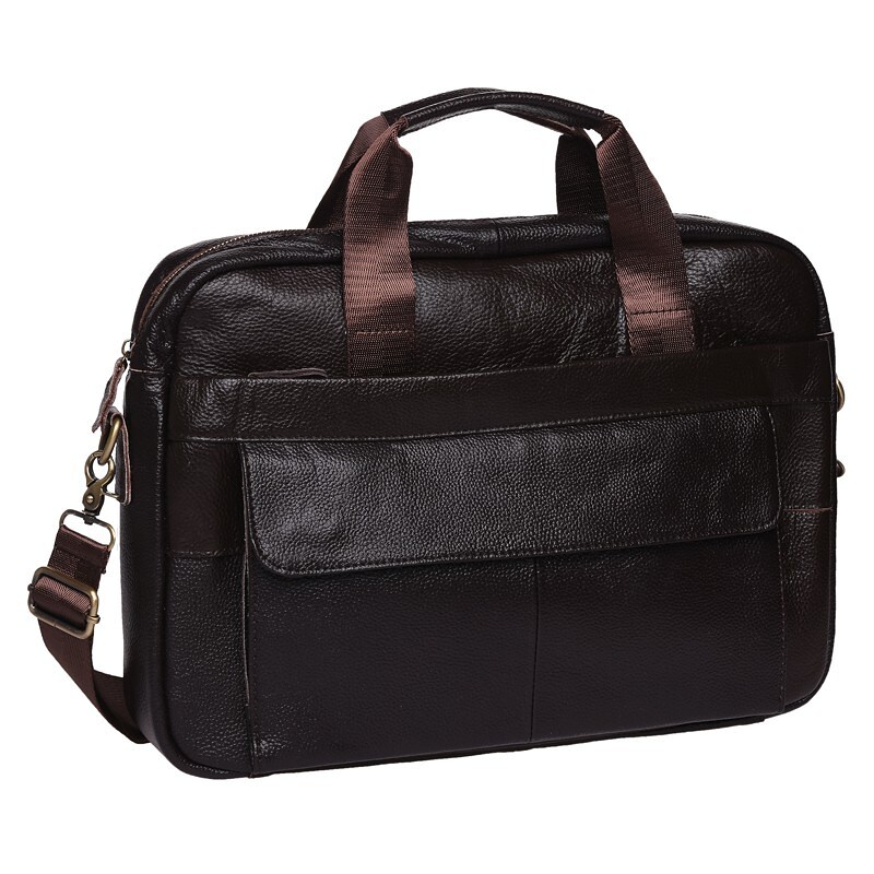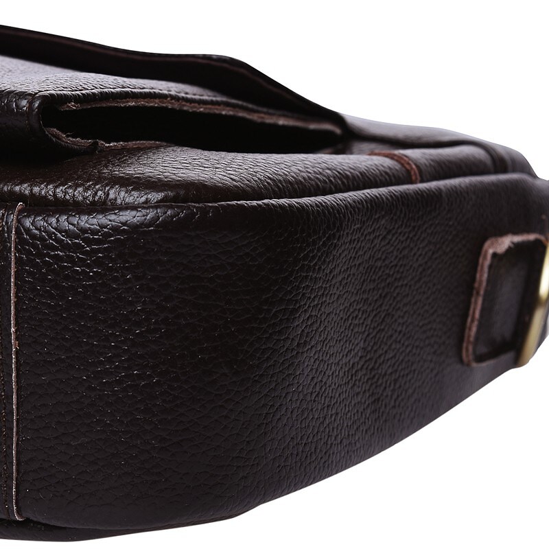 Стильна шкіряна сумка для справжніх чоловіків! Зручна і легка, вміщує ноутбук, документи, гаманець та інші необхідні речі діловому чоловікові. Головне відділення закривається на блискавку. Усередині 2 відділа і 3 місткі кишені. З лицьового боку сумки 2 кишені різного розміру і з тильної сторони 1 глибока кишеня на блискавці. Фурнітура металева. Підкладка - текстиль. В комплекті знімний плечовий ремінь.