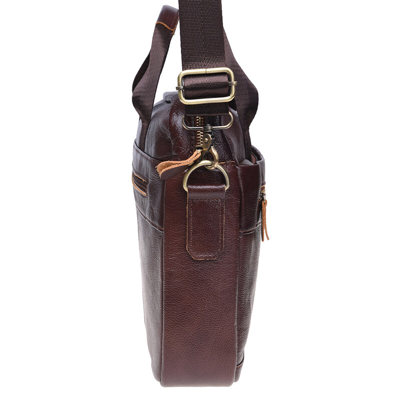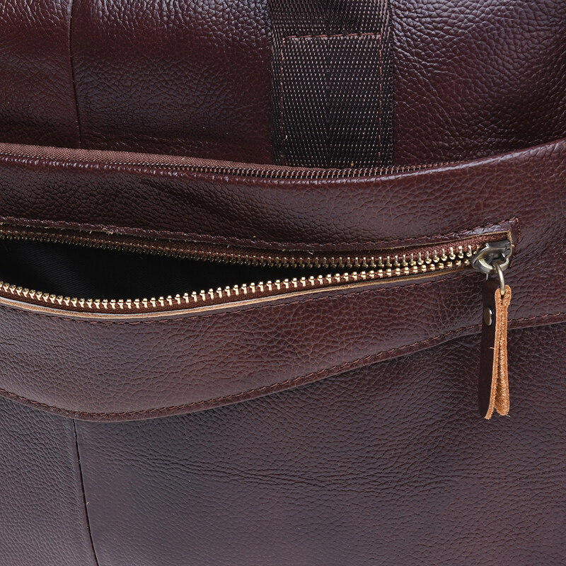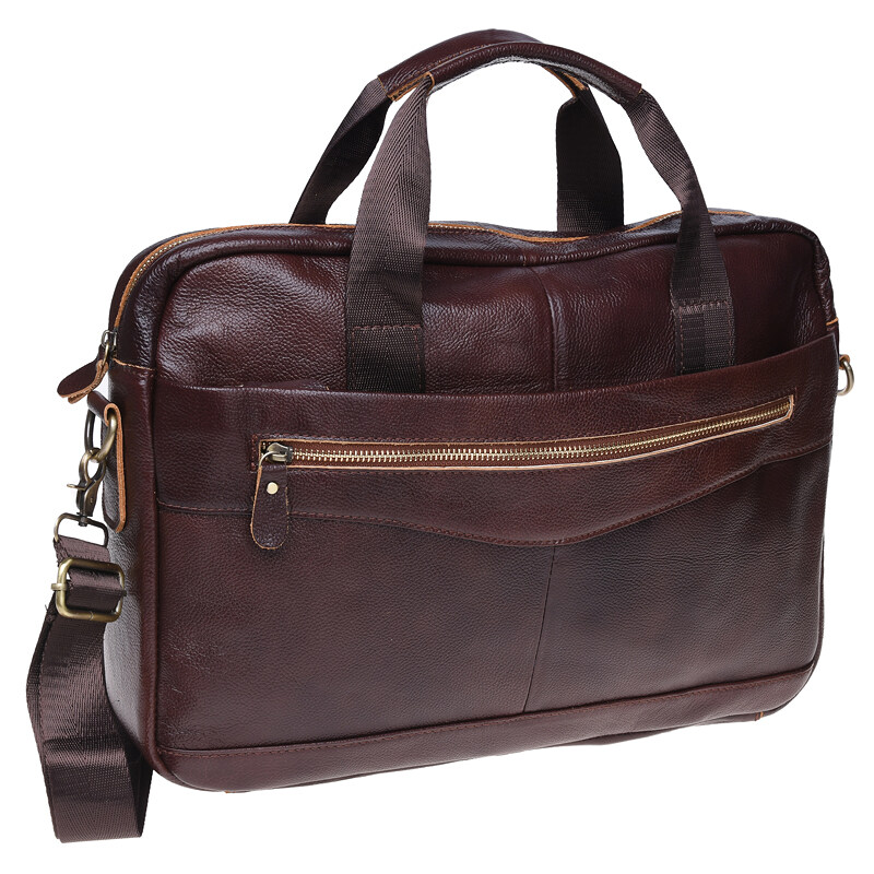 Сумка закривається на блискавку. Має відділення під ноутбук і 3 кишені під телефон та інші дрібниці. В цю сумку поміститься також планшет, гаманець, документи та інші потрібні речі. З лицьового боку-1 накладна кишеня на блискавці, з тильного боку-1 горизонтальна кишеня на блискавці. Підкладка текстиль. Колір фурнітури золото. В комплекті знімний плечовий ремінь.