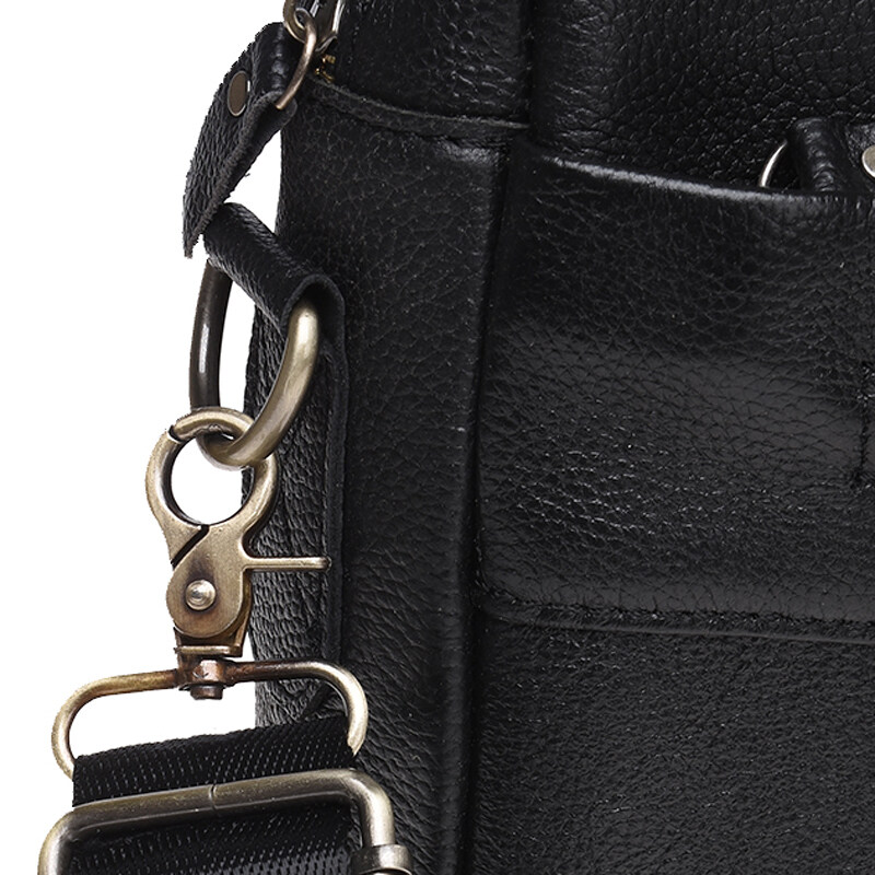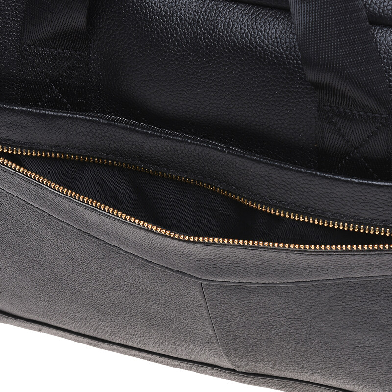 Сумка закривається на блискавку. Має відділення під ноутбук і 3 кишені під телефон та інші дрібниці. В цю сумку поміститься також планшет, гаманець, документи та інші потрібні речі. З лицьового боку-1 накладна кишеня на блискавці, з тильного боку-1 горизонтальна кишеня на блискавці. Підкладка текстиль. Колір фурнітури золото. В комплекті знімний плечовий ремінь.