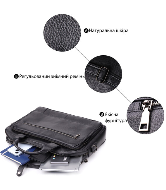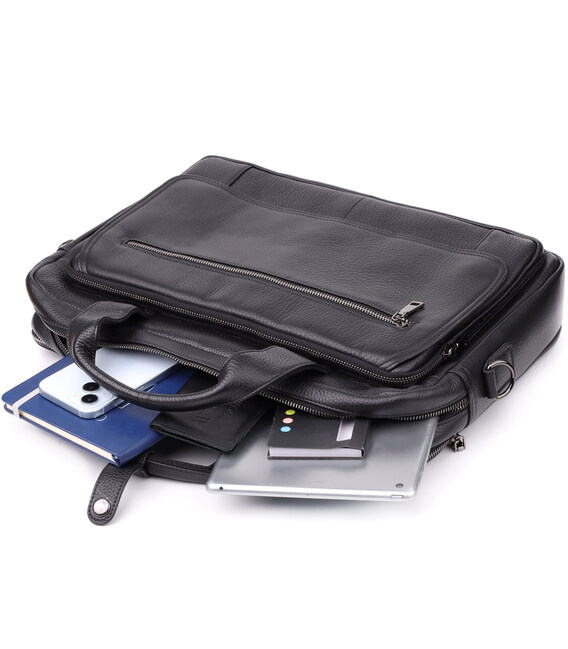 Стильний та функціональний чоловічий портфель з натуральної шкіри – ідеальний вибір для тих, хто цінує зручність, якість та лаконічний дизайн. Ця модель створена для повсякденного використання в діловому середовищі і чудово справляється із завданнями зберігання ноутбука, документів та необхідних аксесуарів.