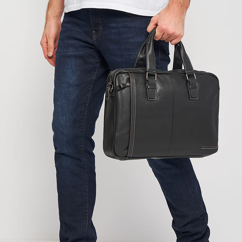 Ділова стильна сумка для чоловіків виготовлена з натуральної шкіри. Має 1 відділення на блискавці, відділ під ноутбук або планшет, Всередині -3 кишені для телефону та інших аксесуарів. Зовні 2 кишені на блискавці. Підкладка з текстилю. Знімний плечовий ремінь регулюється по довжині.