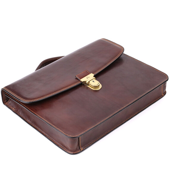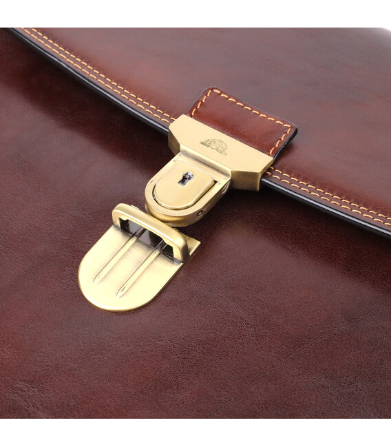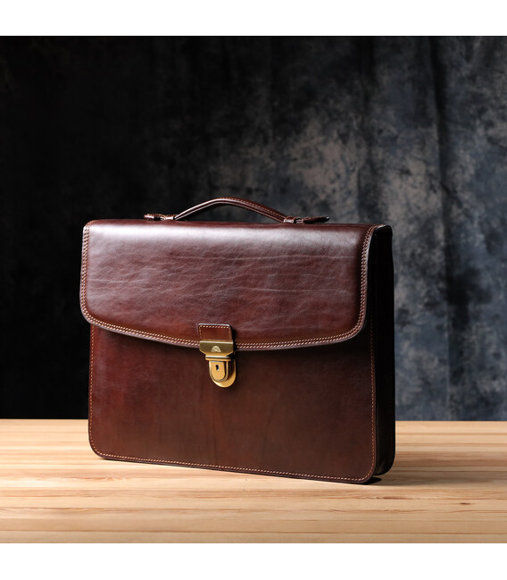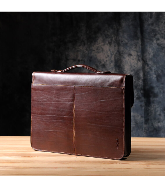 Шкіряний портфель Tony Perotti коричневого кольору – елегантне та функціональне рішення для ділового образу. Виріб виконаний з натуральної шкіри та акуратно прошито по краях коричневою ниткою, що підкреслює його класичний характер. Містке основне відділення з фірмовою підкладкою дозволяє зручно розмістити документи та робоче приладдя, а передня кишеня на блискавці забезпечує швидкий доступ до необхідних дрібниць. Брендована фурнітура під латунь завершує образ, підкреслюючи статус та якість аксесуара.