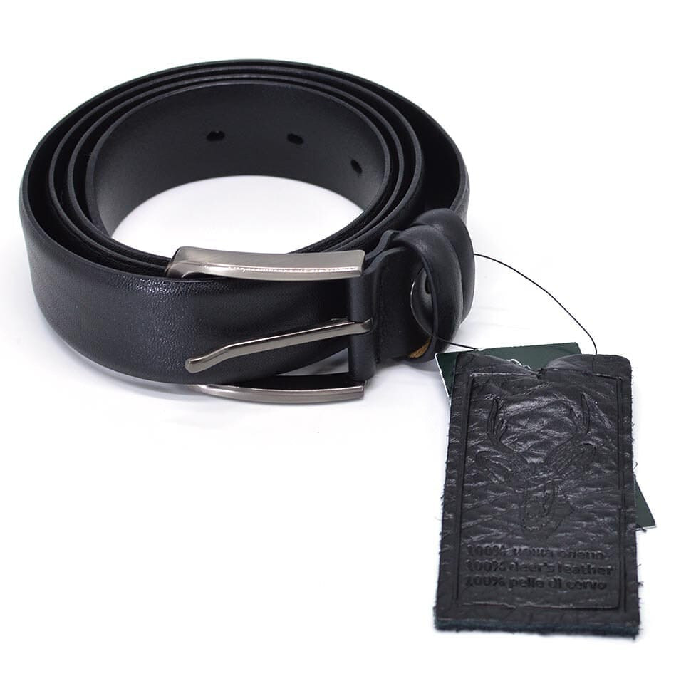 Ремінь із шкіри оленя 35мм чорний, класична пряжка st228674 нікель. Ремінь підходить як для штанів, так і для джинсів. Колір шкіри – чорний. Пряжка класична, металева