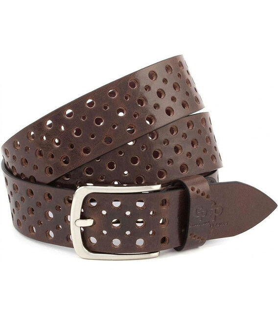 Перфорований коричневий шкіряний ремінь Grande Pelle 411012308