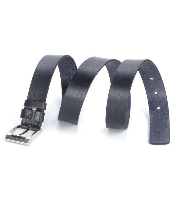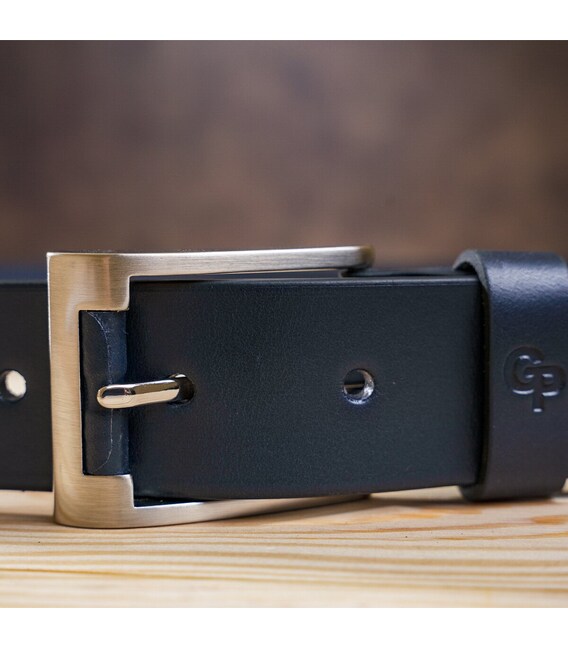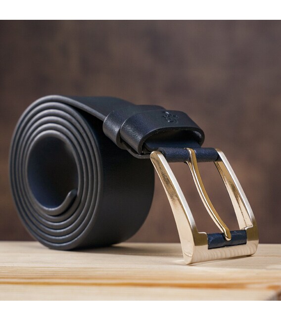 Стильний брючний ремінь - відмінна знахідка для сучасного ділового чоловіка. У цьому аксесуарі поєднуються міцна шкіра хорошої якості, прямокутна пряжка з міцного металу кольору срібла, а також благородний темно-синій відтінок. Цей ремінь можна носити як кожен день, так і вдягати його для більш урочистих випадків, адже він виглядає дійсно гідно і модно.