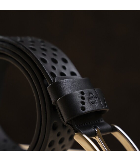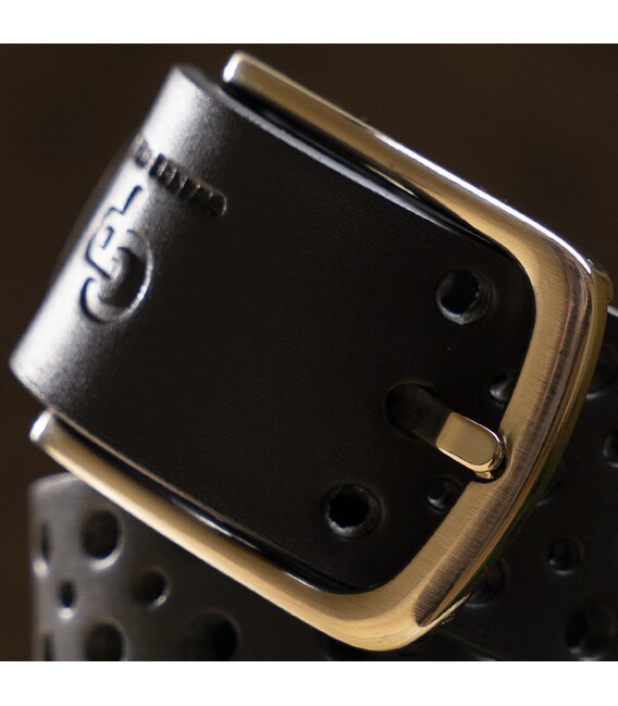Ремінь з цільної італійської шкіри, модель підійде як чоловікам, так і жінкам. Незвичайне полотно перфоровані отвори різних діаметрів, що надає виробу вишуканості і неповторності. Виробник, використовує виключно імпортну фурнітуру, яка не темніє, не дряпається і не викликає алергії. Купити ремінь цієї моделі - значить купити універсальний ремінь під джинси і під штани.
