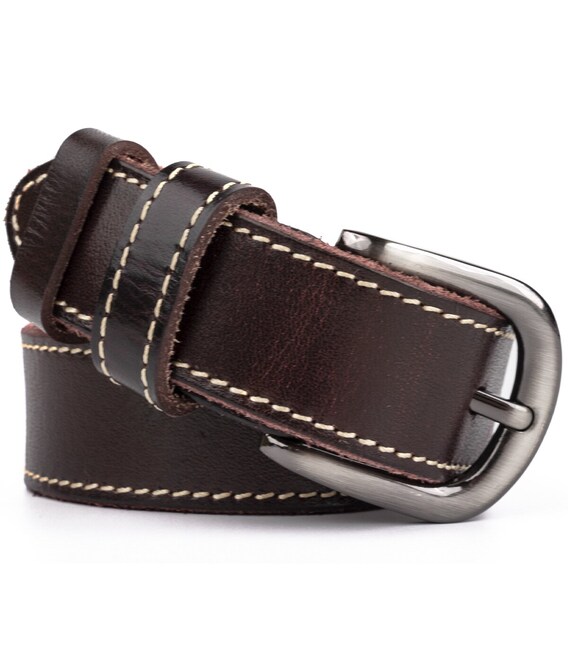 Ремінь унісекс з рядком по краях Vintage 20125 Темно-коричневий