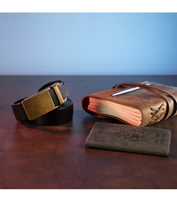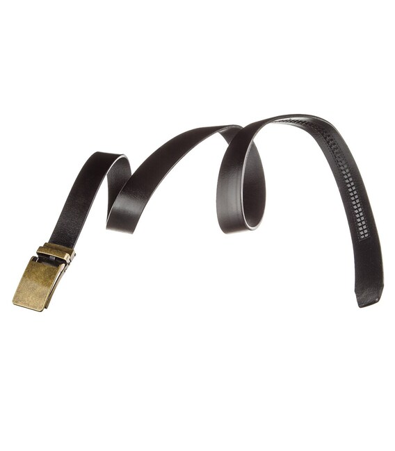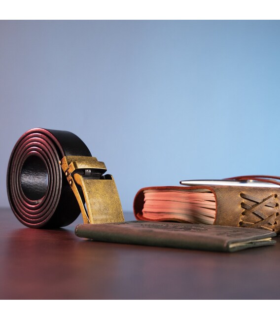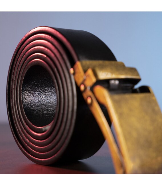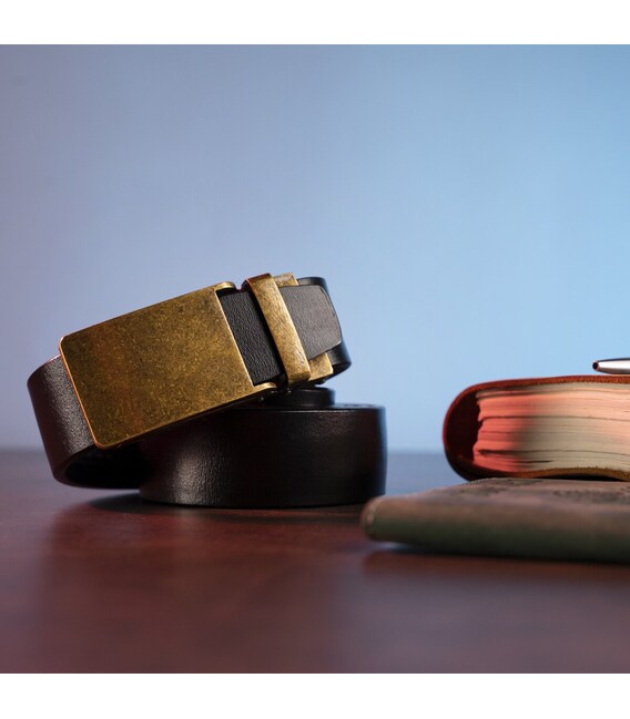 Ремінь з натуральної шкіри з ретро латунною автоматичною пряжкою Vintage 20219 Чорний