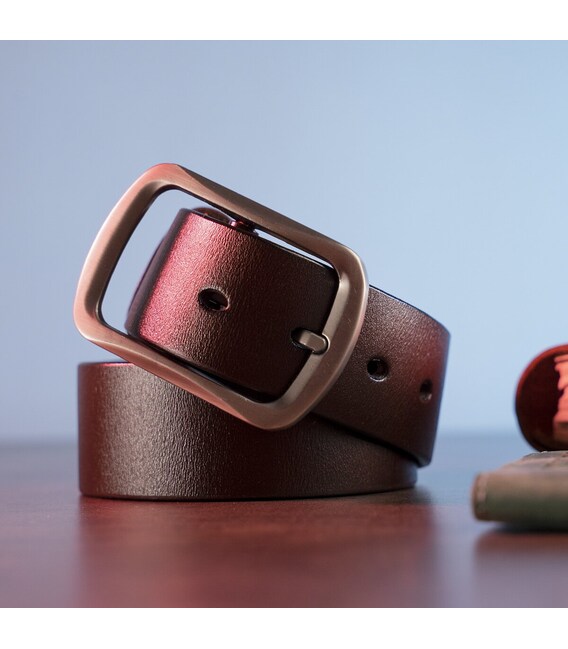 Чоловічий шкіряний ремінь із закругленою класичною пряжкою Vintage 20230 Коричневий