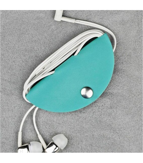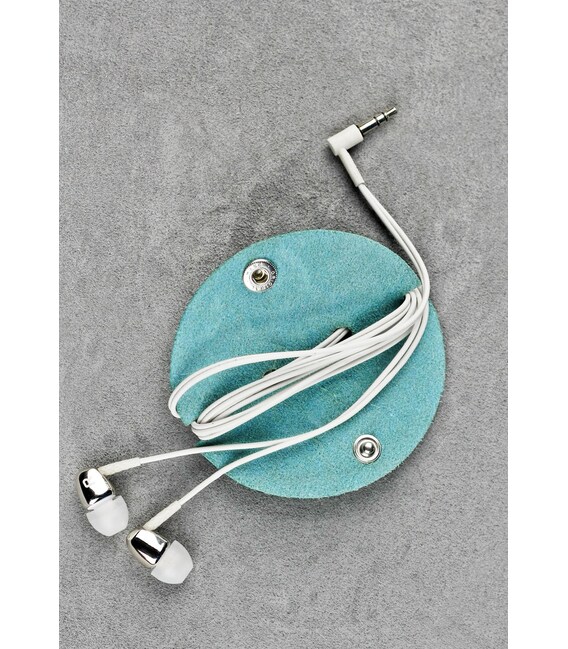 Шкіряний холдер для навушників та проводів бірюзовий