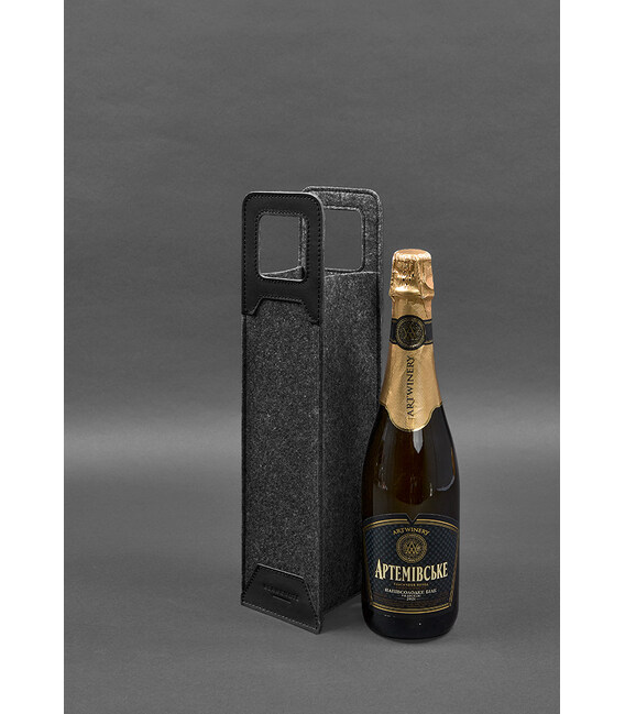 Чохол для вина 1.0 із фетру зі шкіряними вставками чорний Краст