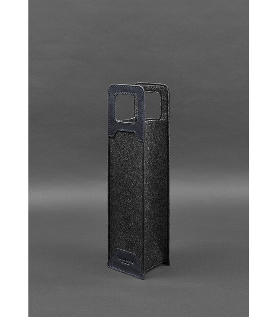 Чохол для вина 1.0 із фетру зі шкіряними вставками синій Crazy Horse