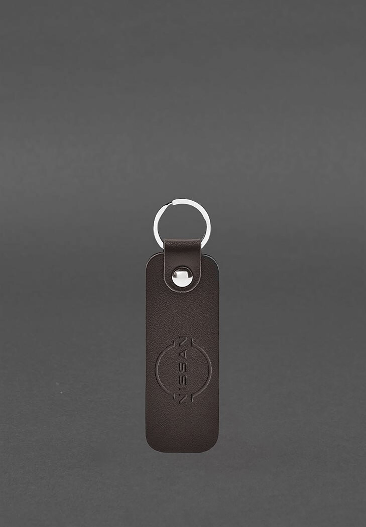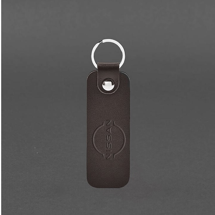 Стильний брелок виготовлений із натуральної шкіри та прикрашений тисненням у вигляді логотипа Nissan