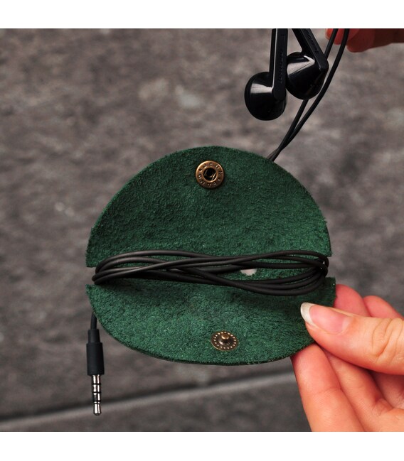 Детальніше Шкіряний холдер для навушників та проводів зелений