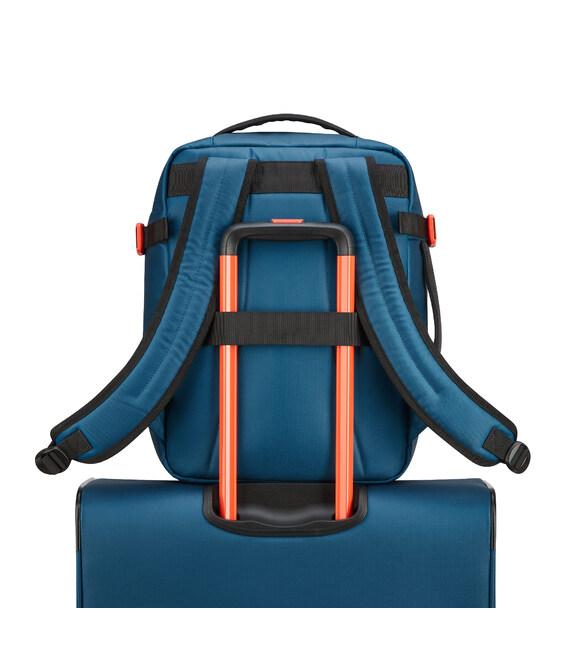 Ідеальний варіант для відряджень в яких Вам знадобляться, предмети першої необхідності і місце для одягу. Вироби колекції виготовлені з хвилястого поліестеру 900D з PU-покиттям, яке захищає від дощу, бризок, вологи й швидко сохне. Виріб оснащений: компактним основним відділом з кишенею для дрібних предметів з сітчастою перегородкою для організації та розділення одягу з еластичними притискними ременями. Розмір виробу дозволяє брати рюкзак на борт літака авіакомпанії VUELING/WIZZAIR/RYANAIR. Для зручності переміщення на задній частині розміщені м'які плечові ремені, бічна ручка для горизонтального перенесення та тканинна планка для кріплення на телескопічній ручці валізи.