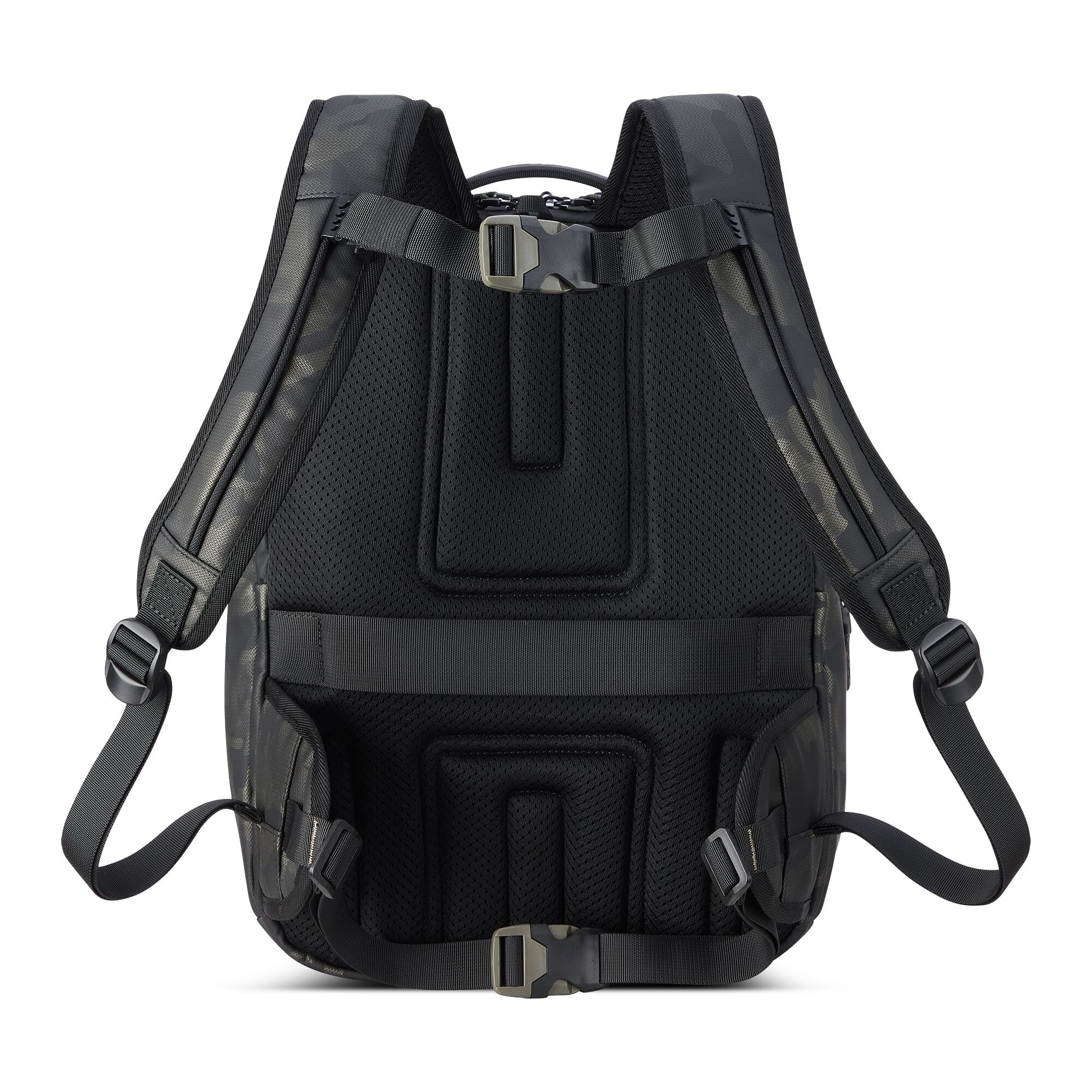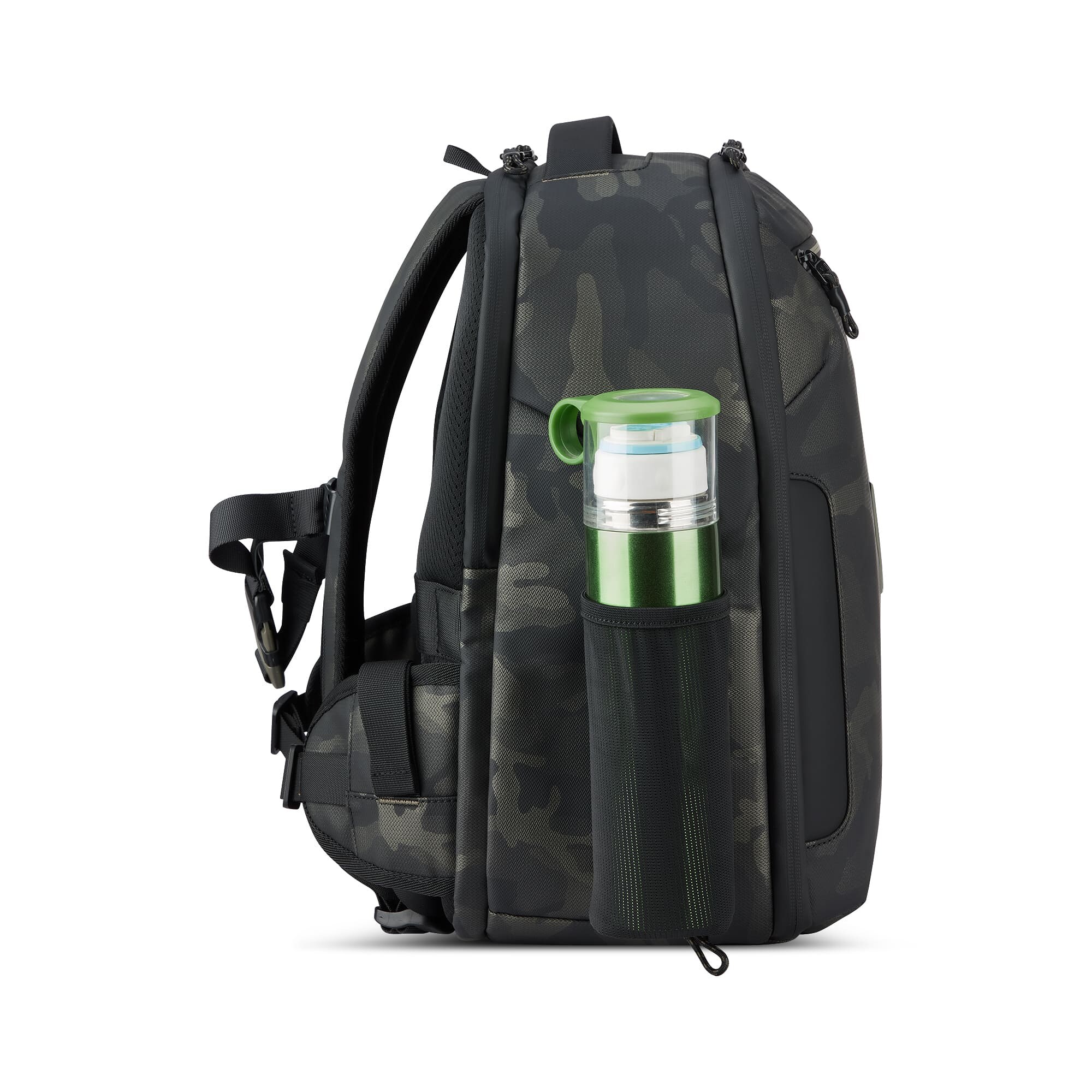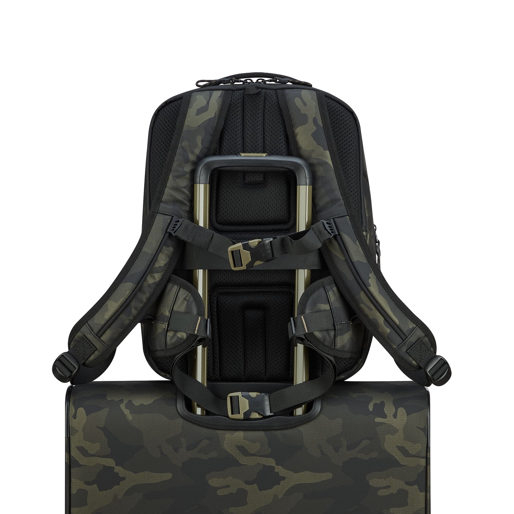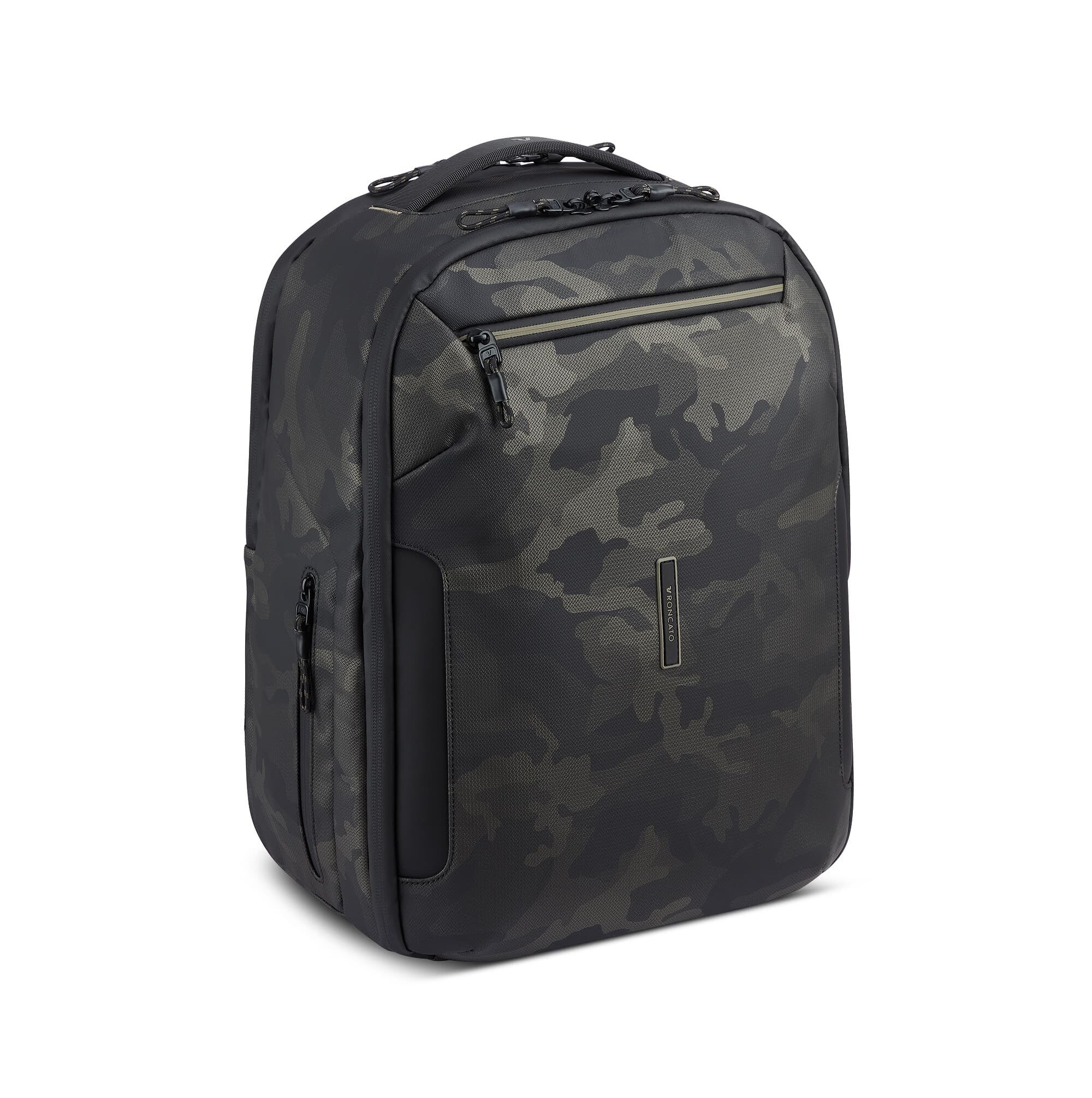 Рюкзак для подорожей-унікальна можливість поєднати особисті речі з сучасними гаджетами. Ідеальний варіант для відряджень в яких Вам знадобляться техніка, предмети першої необхідності і місце для одягу. Вироби колекції виготовлені з хвилястого поліестеру 900D з PU-покиттям, яке захищає від дощу, бризок, вологи й швидко сохне. Виріб оснащений двома основними віддідами, з кишенею для дрібних предметів з сітчастою перегородкою для організації та розділення одягу. Другий відділ призначений для ноутбука 14", планшету та документів. Також, передбачена бічна кишеня для пляшки/парасольки. Для зручності переміщення на задній частині розміщені м'які плечові ремені, планка для фіксації на телескопічній системі валізи, можливість застібнути плечові ремені фіксатором на грудях та ручка для вертикального перенесення.