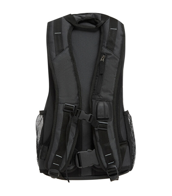 Аксесуар оснащений м’яким відділенням для ноутбука або планшета, а також органайзером для дрібниць. Спереду — два додаткові відсіки на блискавках, з боків — сітчасті кишені. Є вихід для навушників і USB-порт. Регульовані лямки та грудна стяжка забезпечують надійну фіксацію.